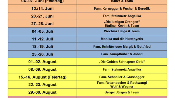 - Von 1. Mai bis 26. Oktober, an Samstag, Sonntag und Feiertagen bewirtschaftete Alm liegt auf einem idyllischen Almboden am Weg zum Großen Almkogel, zum Burgspitz, zum Ennsberg-Hühnerkogel – oder einfach nur zum Dahinwandern.